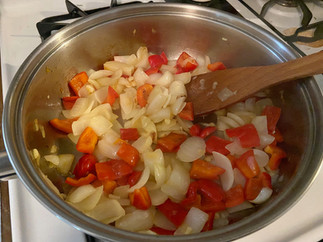 2. Sauté onions, peppers and garlic. Cook the onions first until they have begun to soften. Add the peppers and a pinch of salt. Cook until the onions are beginning to caramelize and the peppers are soft. Add the minced garlic and the fresh chopped tomatoes. Continue to cook until the mixture is soft throughout. Add fresh parsley (or dried) about two minutes before you are finished the sauté process. Let cool.
