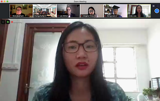The Global Business Journalism graduating class of 2020 celebrated its successful completion of study at Tsinghua University with a one-year ceremony via Zoom. A handful of graduates, accompanied by Global Business Journalism's Chinese staff and faculty, attended in person in the Global Sources Room of the Tsinghua School of Journalism and Communication on the morning of June 21. Others attended in remote locations from Africa to Australia to the Americas to Russia.